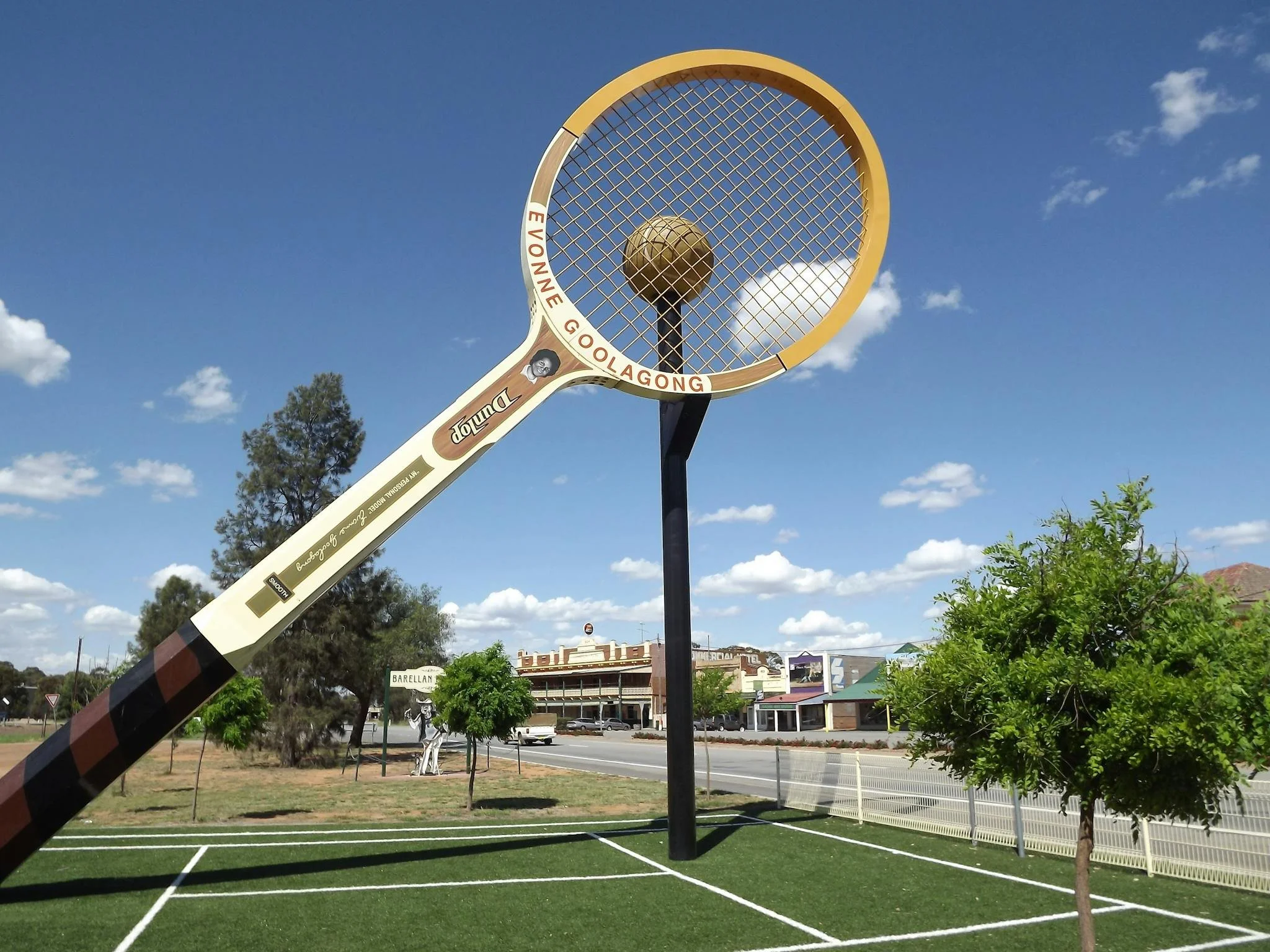 And then there’s the big one. Standing proudly in Evonne Goolagong Park is Barellan’s Big Tennis Racquet.